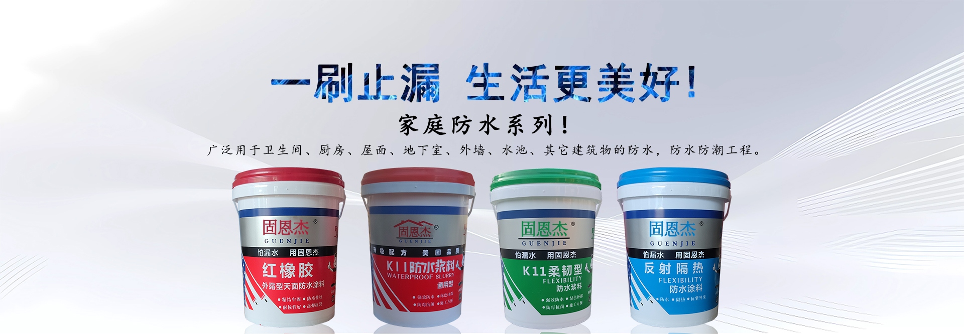 廣州固恩杰防水建材科技有限公司(簡稱:固恩杰)是集研發、生產、銷售于一體的高新技術建筑材料制造企業,與多個國際知名化工企業建立良好穩定的戰略合作伙伴關系,公司目標是打造中國最具競爭力的防水品牌 。公司產品具有質量穩定可靠、耐久性好、綠色環保、對人體健康無毒害作用、使用方便、粘結力強、耐候性好、提高工程質量、降低工程造價等優勢,是提升人們居住環境質量的換代產品,廣泛應用于新舊商住樓,賓館會所、辦公樓寓的室內外裝修工程。